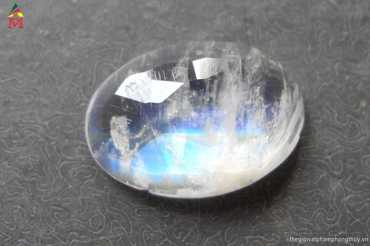 Mặt nhẫn đá mặt trăng ánh xanh tự nhiên.